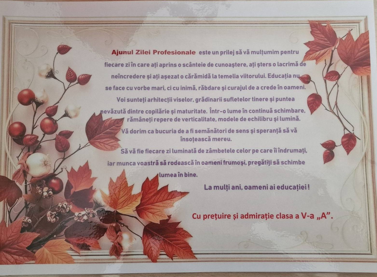 Toți, păstrăm în sipețelul amintirilor momente unice legate de școală, colegi și profesori. Cu plecăciune , le mulțumim dascălilor care ne-au format că personalități și le mulțumim pentru efortul depus.