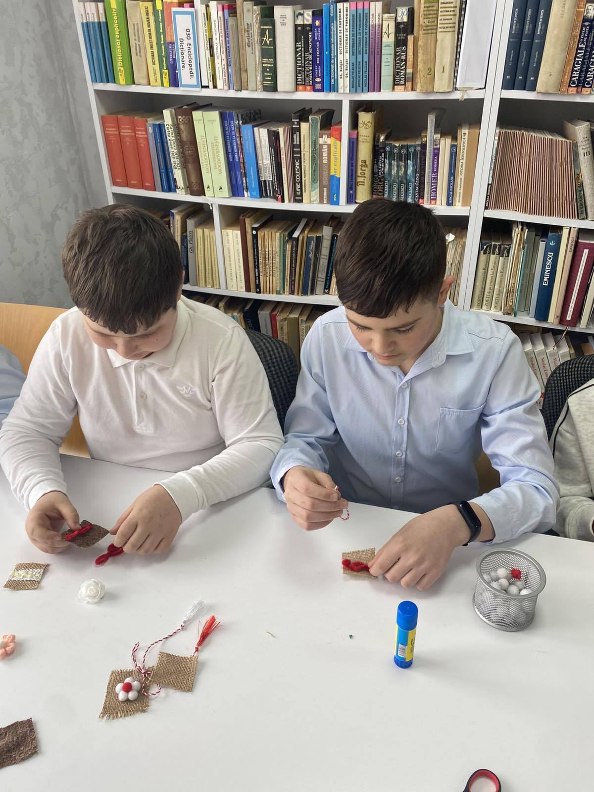 Cu răbdare și delicatețe, doamna bibliotecară a ghidat fiecare etapă a procesului de creație, încurajând originalitatea și exprimarea liberă. Băieții au demonstrat nu doar îndemânare, ci și sensibilitate artistică, realizând mărțișoare pline de culoare și semnificație, destinate a fi oferite cu drag celor dragi.